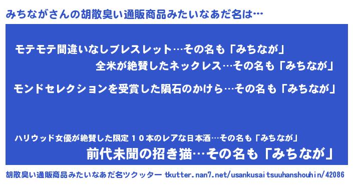 | 男性向けラノベタイトル風あだ名 | 『ノーゲーム・ノーミチナガ』 |