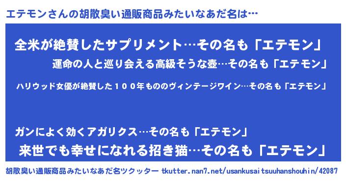 | ヘコむあだ名 | 『エテお』『エテモン(笑)』 |
