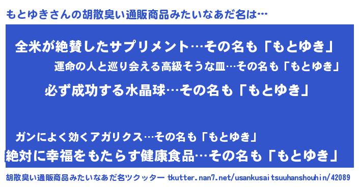 | 意味不明あだ名 | 『ペロリンもとゆき』『永久保存もとゆき』 |