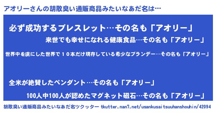 | ヘコむあだ名 | 『アオっふぃ~』『アオリー(遠い目)』 |