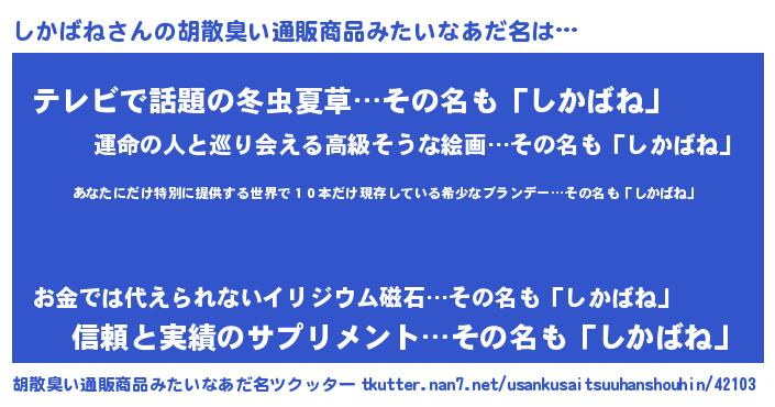| ヘコむあだ名 | 『しかっぺ』『なまこ酢』 |