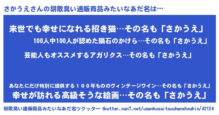 | 意味不明あだ名 | 『自称さかうえ』『永久保存さかうえ』 |