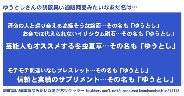 | ポケモン風あだ名 | 『ユウセウス』『ユウトダネ』 |