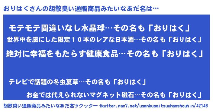 | ヘコむあだ名 | 『おりはく(笑)』『おりにゅー』 |