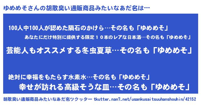 | 意味不明あだ名 | 『自称ゆめめそ』『ゆめめそフォーエバー』 |