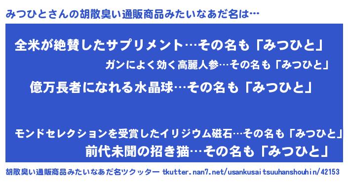 | ヘコむあだ名 | 『みつふぇ~』『みつお』『レバニラ』 |