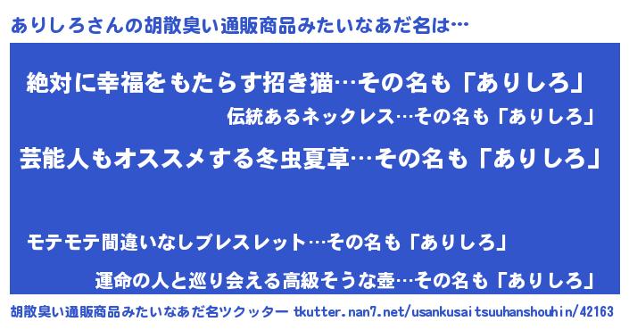 | 意味不明あだ名 | 『自称ありしろ』『永久保存ありしろ』 |