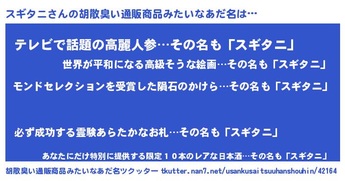 | ヒーロー風カッコイイあだ名 | 『慈愛の使者スギタニ』『仮面スギダー』 |