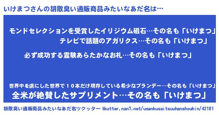 | 男性向けラノベタイトル風あだ名 | 『いけまつの憂鬱』 |