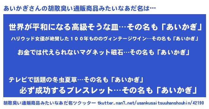 | ヘコむあだ名 | 『なまこ酢』『あいっふぃ~』 |