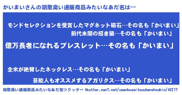 | ヘコむあだ名 | 『かいふぇ~』『かいまい(小並感)』 |