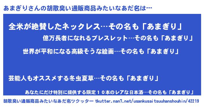 | ヒーロー風カッコイイあだ名 | 『ウルトラあまぎりマン』『銀牙騎士アマ』 |