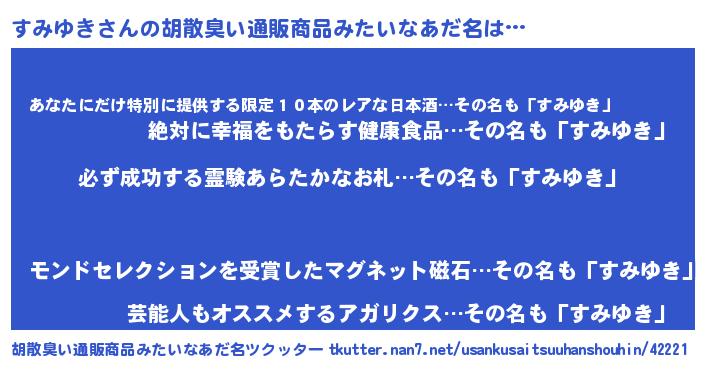 | 伝説のあだ名 | 『伝説のスナイパーすみゆき』 |
