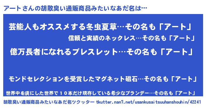 | 男性向けラノベタイトル風あだ名 | 『アートアートオンライン』 |