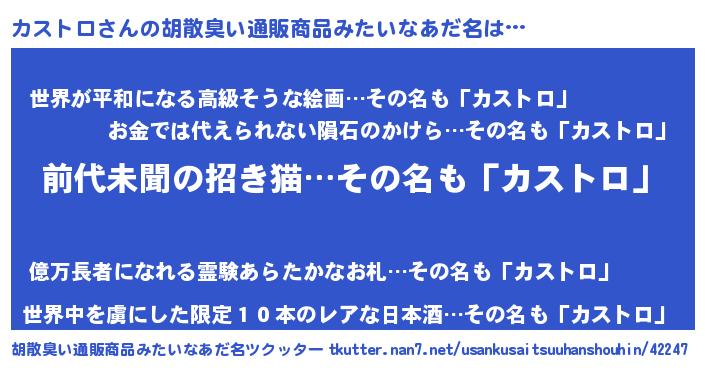 | 意味不明あだ名 | 『永久保存カストロ』 |