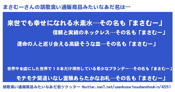 | ヘコむあだ名 | 『レバニラ』『まさむー(遠い目)』 |