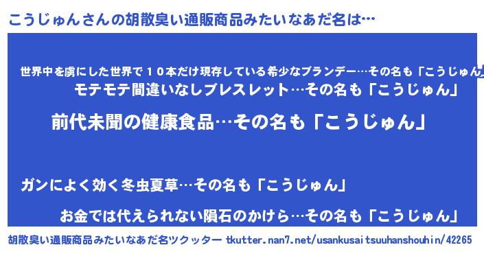 | 意味不明あだ名 | 『永久保存こうじゅん』『自称こうじゅん』 |