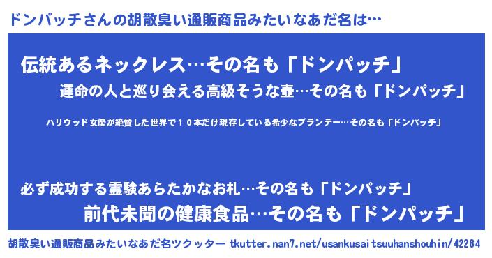 | 意味不明あだ名 | 『住所不定無職ドンパッチ(95歳)』 |