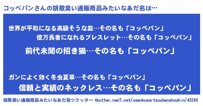 | ヒーロー風カッコイイあだ名 | 『ネオコッペパン』『炎刃騎士コッ』 |