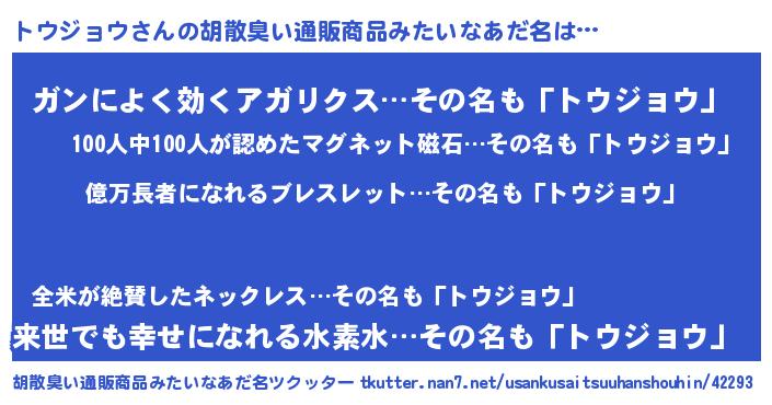 | ヘコむあだ名 | 『トウにー』『トウジョウ(小並感)』 |