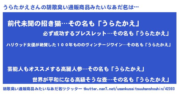 | 伝説のあだ名 | 『聞きしに勝る吟遊詩人うらたかえ』 |