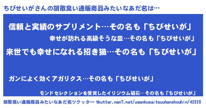 | 意味不明あだ名 | 『永久保存ちびせいが』 |