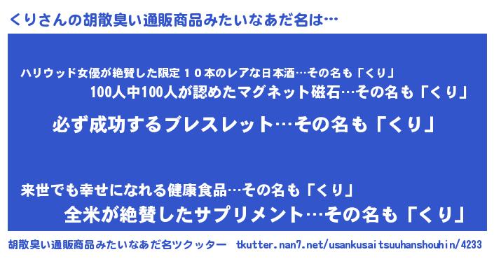 | ヘコむあだ名 | 『くりにー』『くりを』『くり(笑)』 |