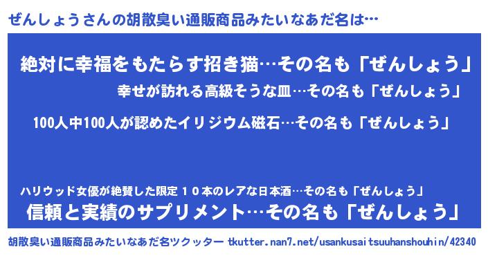 | ヘコむあだ名 | 『ぜんしょう(爆)』『ぜんお』 |