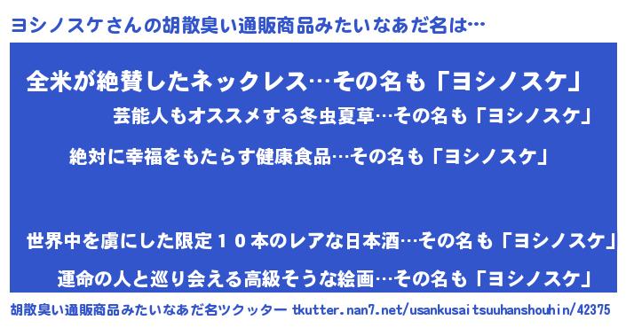 | ヘコむあだ名 | 『ヨシノスケ(爆)』『ヨシ太郎』 |