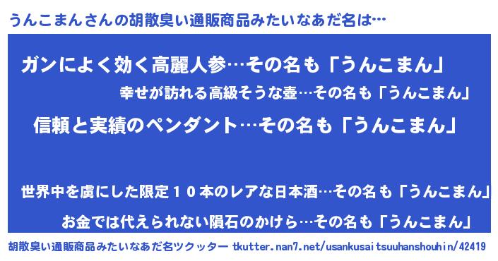 | 欧米人風あだ名 | 『ウサインうんこまん』 |