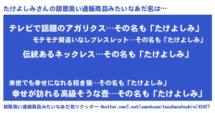 | 意味不明あだ名 | 『とにかく怪しいたけよしみ』 |