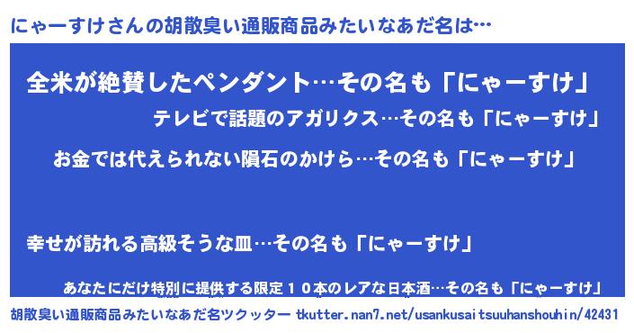 | 欧米人風あだ名 | 『アンジェラ・にゃーすけ』 |