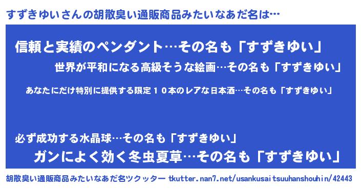 すずきゆいさんの胡散臭い通販商品みたいなあだ名をツクッター!