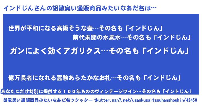 | 意味不明あだ名 | 『自称インドじん』『永久保存インドじん』 |