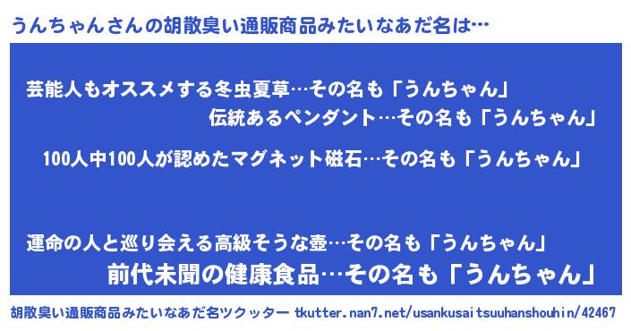 | ヘコむあだ名 | 『うんちゃん(小並感)』『うんっちょ』 |