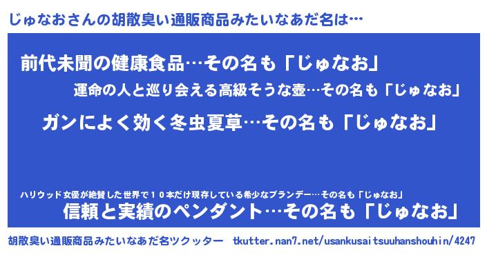 | ヘコむあだ名 | 『じゅなお(震え声)』『じゅ太郎』 |