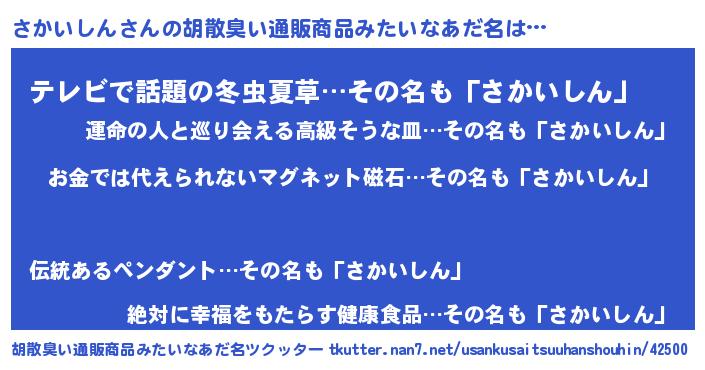 | ヘコむあだ名 | 『さかいしん(笑)』『なまこ酢』 |