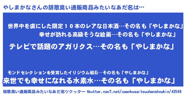 | ヒーロー風カッコイイあだ名 | 『サイバー戦士ヤシマカナ』 |