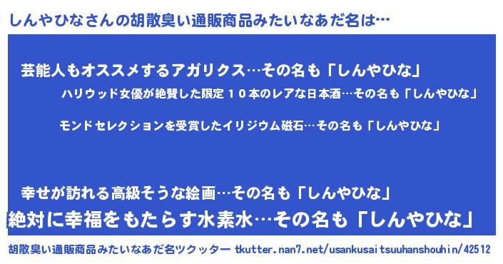 | ヘコむあだ名 | 『しんやひな(苦笑)』『酢こんぶ』 |