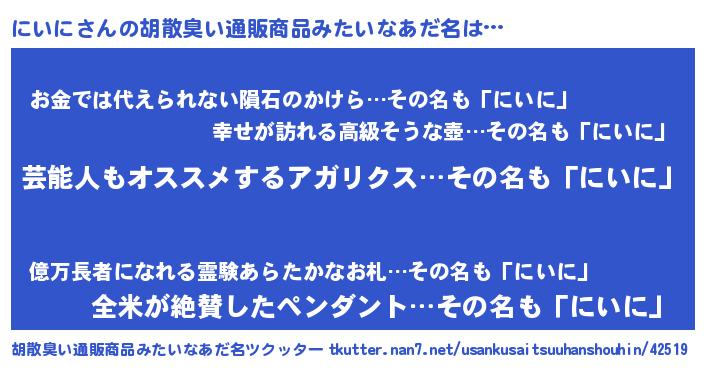 | ヘコむあだ名 | 『にいっ子』『レバニラ』『にいもー』 |