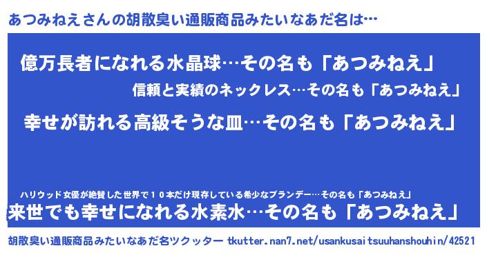 | 料理風あだ名 | 『あつみねえごはん』 |