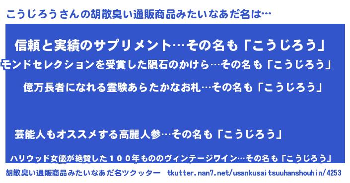 | 肩書あだ名 | 『こうじろう中将』『こうじろう社長』 |