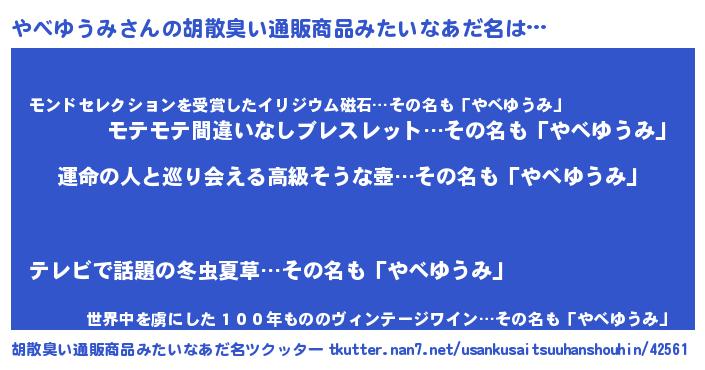 | 意味不明あだ名 | 『やべゆうみフォーエバー』 |