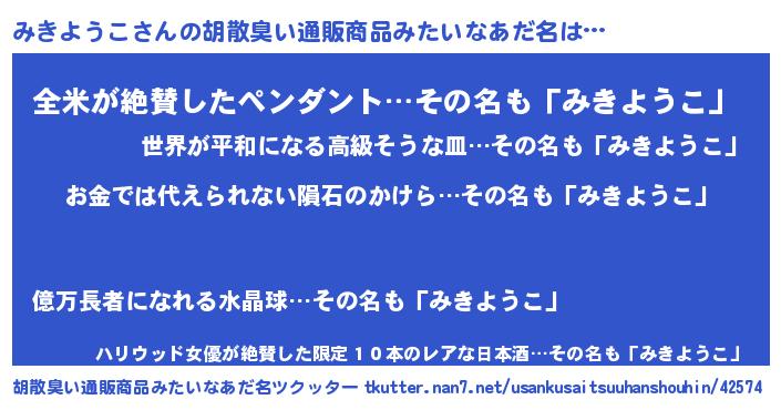 | ヒーロー風カッコイイあだ名 | 『慈愛の使者みきようこ』『炎刃騎士ミキ』 |