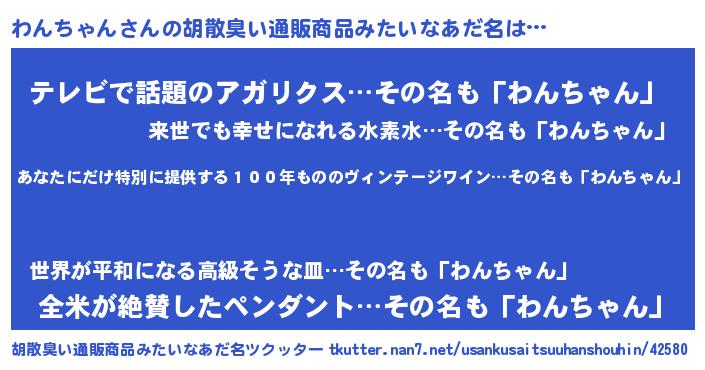 | ヘコむあだ名 | 『わんを』『わんちゃん(爆)』 |