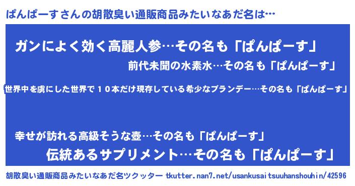 | ヘコむあだ名 | 『ぱんっちょ』『ぱんぱーす(震え声)』 |