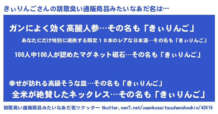| 欧米人風あだ名 | 『ダニエルきぃりんご』 |