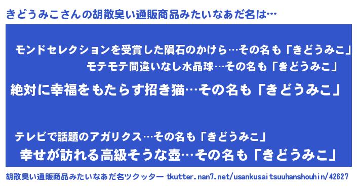 | ヘコむあだ名 | 『きどうみこ(笑)』『酢こんぶ』 |