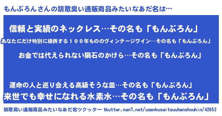 | ヘコむあだ名 | 『もんぷりん』『もんぶろん(苦笑)』 |