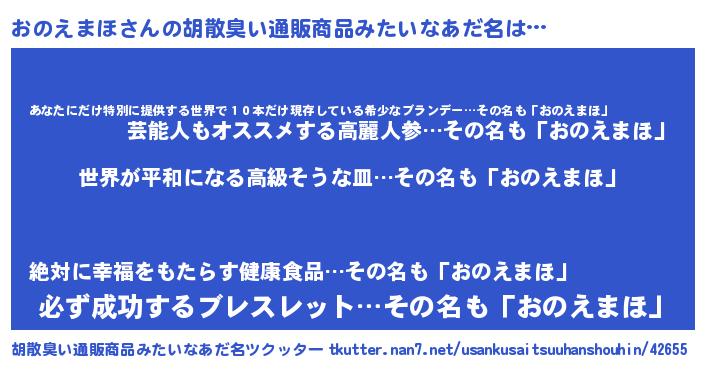 | ヘコむあだ名 | 『なまこ酢』『おのもー』『おのを』 |
